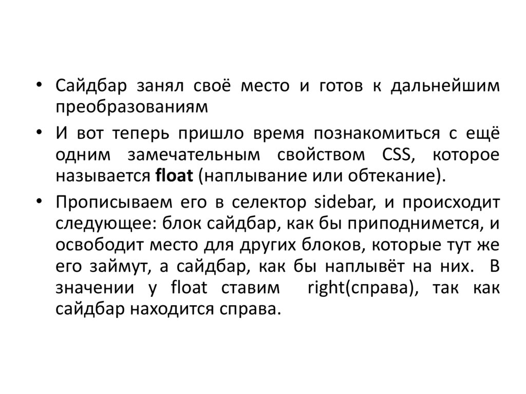 • Сайдбар занял своё место и готов к дальнейшимпреобразованиям