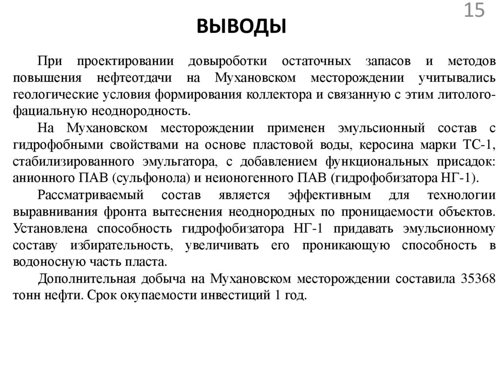 повышения нефтеотдачи на Мухановском месторождении учитывались