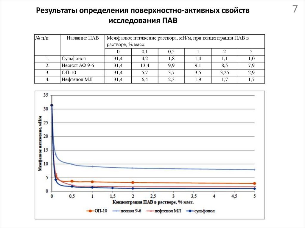 анионного ПАВ (сульфонола) и неионогенного ПАВ (гидрофобизатора НГ-1).