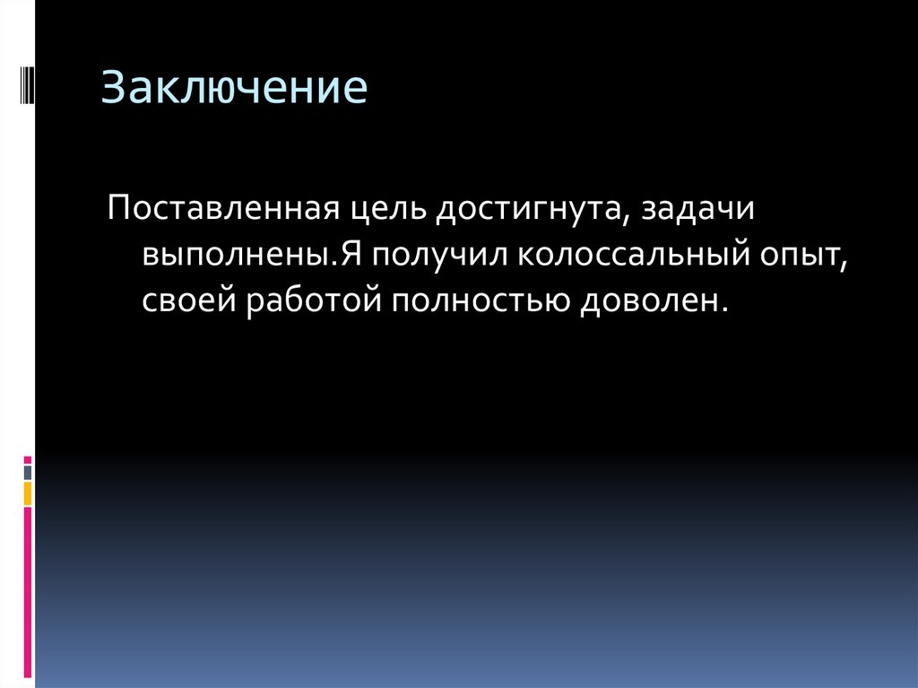 ЗаключениеПоставленная цель достигнута, задачи