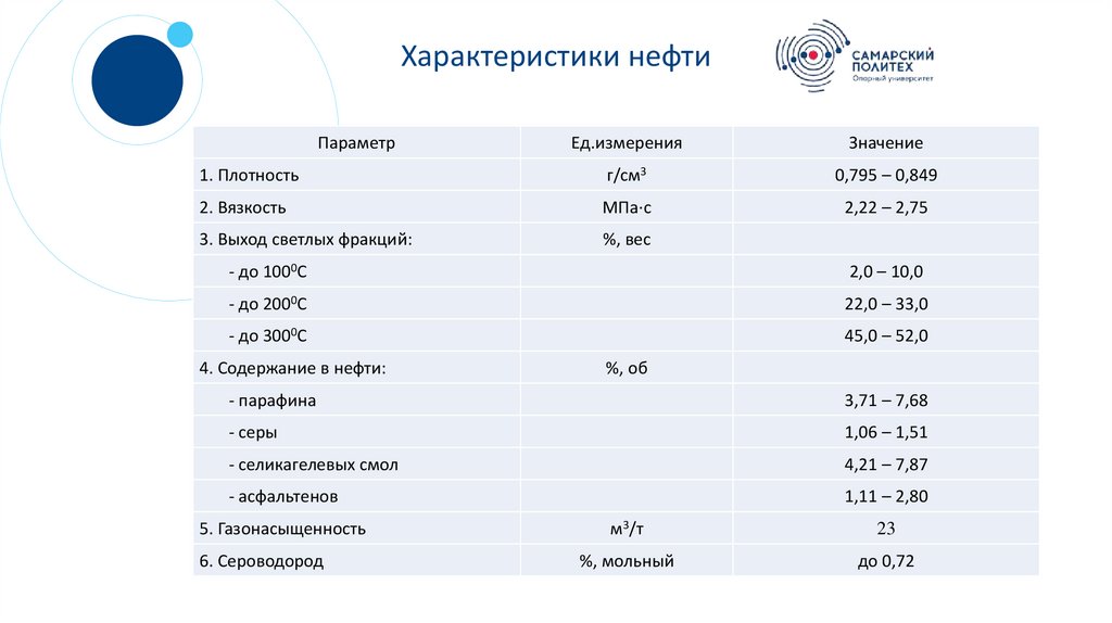 Характеристики нефтиПараметр