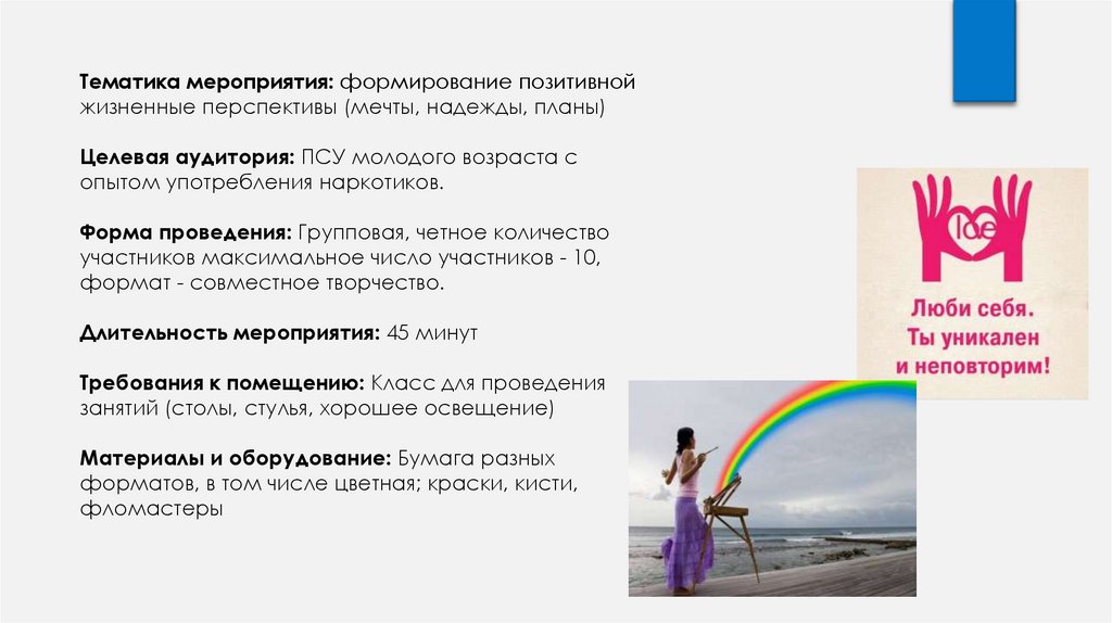Тематика мероприятия: формирование позитивнойжизненные перспективы (мечты, надежды, планы)