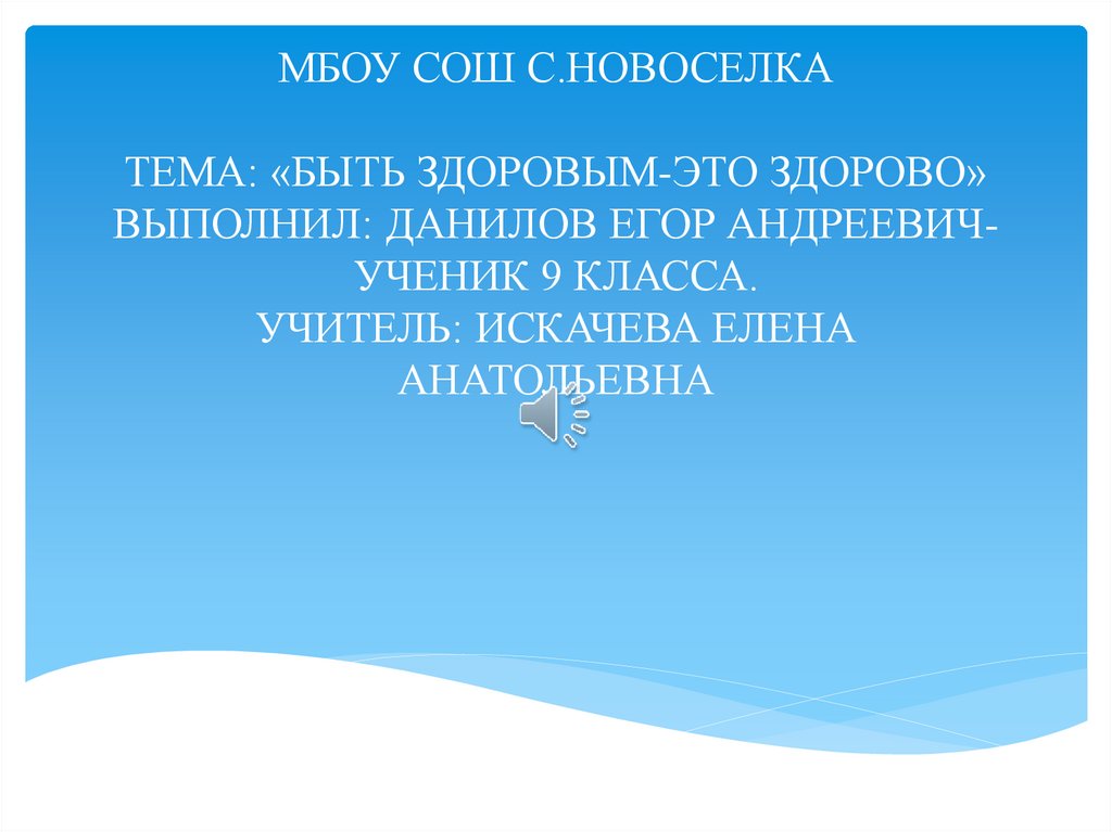 МБОУ СОШ С.НОВОСЕЛКАТЕМА: «БЫТЬ ЗДОРОВЫМ-ЭТО ЗДОРОВО»