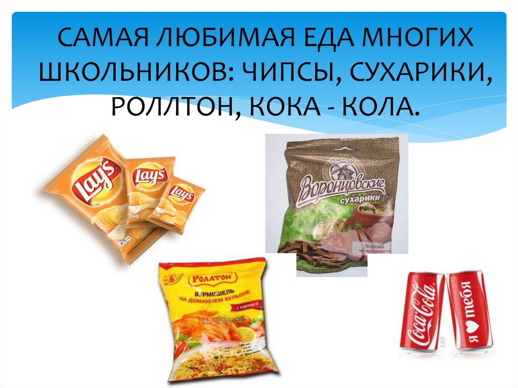 САМАЯ ЛЮБИМАЯ ЕДА МНОГИХШКОЛЬНИКОВ: ЧИПСЫ, СУХАРИКИ,