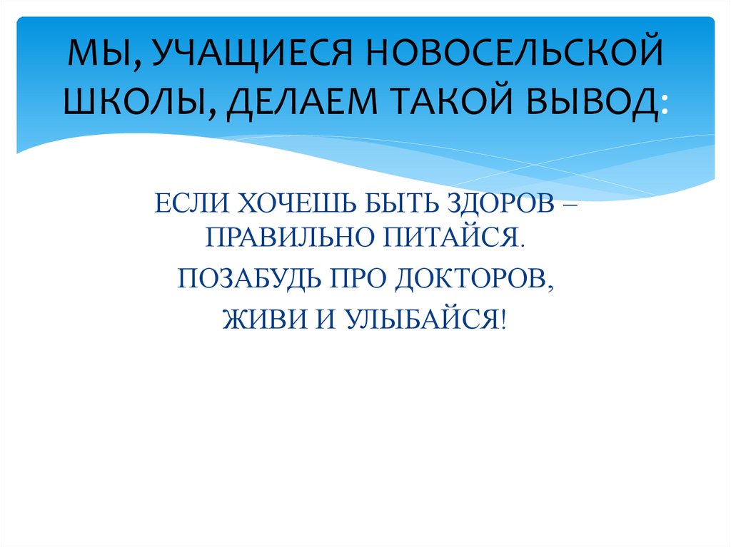МЫ, УЧАЩИЕСЯ НОВОСЕЛЬСКОЙШКОЛЫ, ДЕЛАЕМ ТАКОЙ ВЫВОД:
