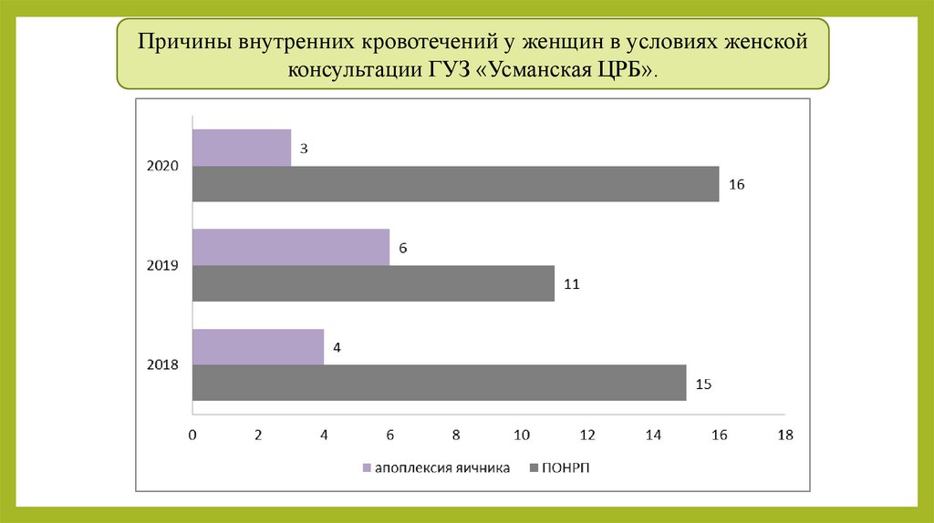 Причины внутренних кровотечений у женщин в условиях женскойконсультации ГУЗ «Усманская ЦРБ».