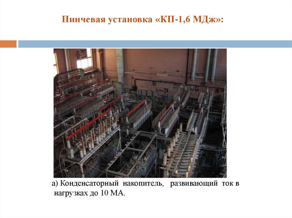 Пинчевая установка «КП-1,6 МДж»:а) Конденсаторный накопитель, развивающий ток в