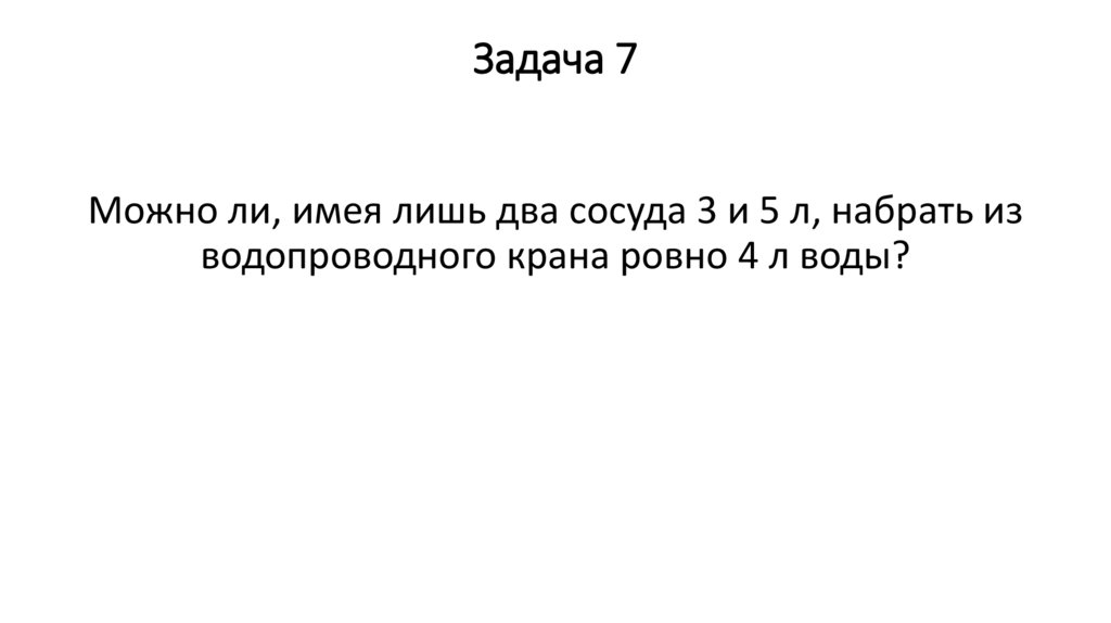 Задача 7Можно ли, имея лишь два сосуда 3 и 5 л, набрать из