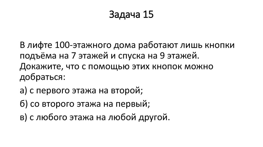 Задача 15В лифте 100-этажного дома работают лишь кнопки