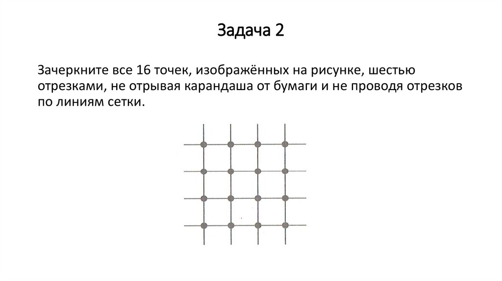Задача 2Зачеркните все 16 точек, изображённых на рисунке, шестью