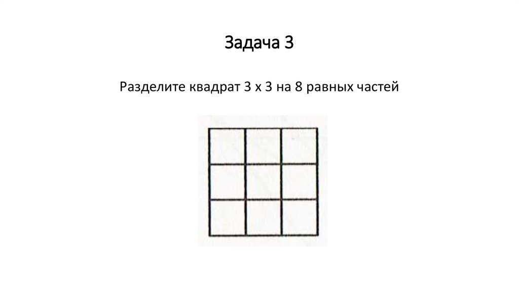 Задача 3Разделите квадрат 3 х 3 на 8 равных частей