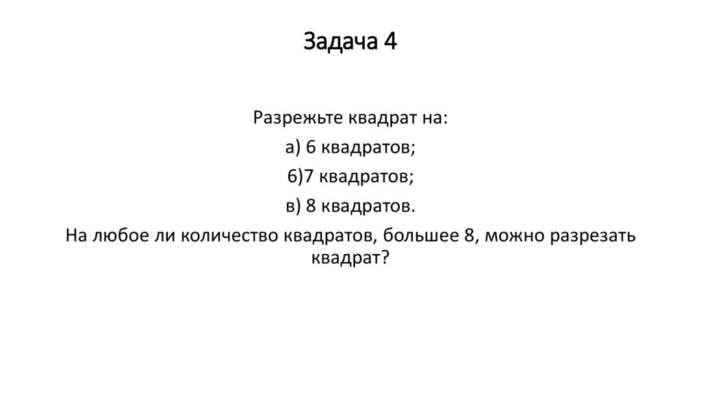 Задача 4Разрежьте квадрат на: