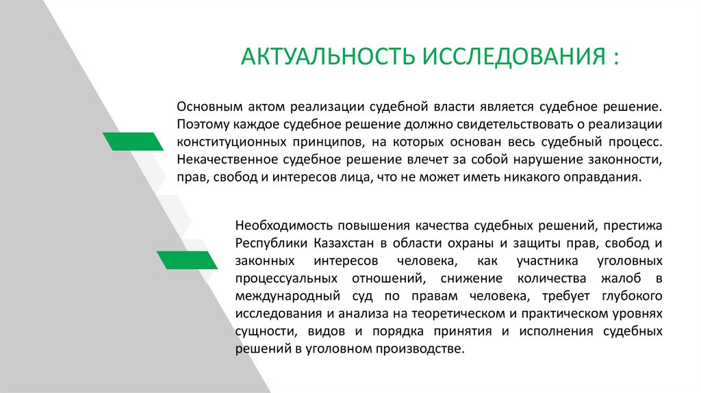 АКТУАЛЬНОСТЬ ИССЛЕДОВАНИЯ :Основным актом реализации судебной власти является судебное решение.