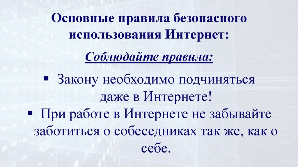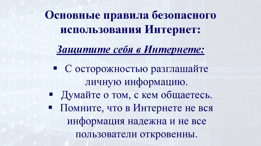 Основные правила безопасногоиспользования Интернет: