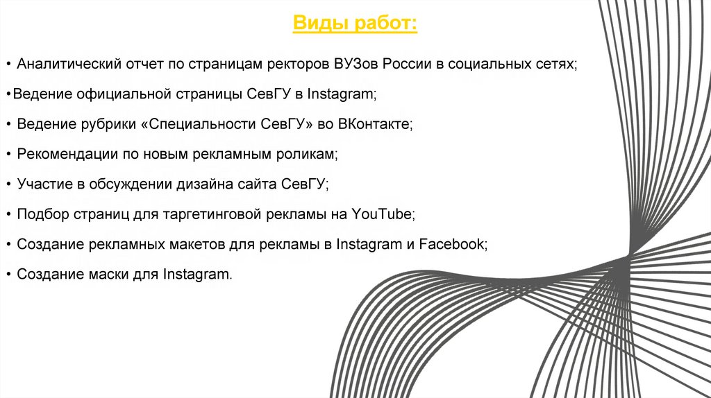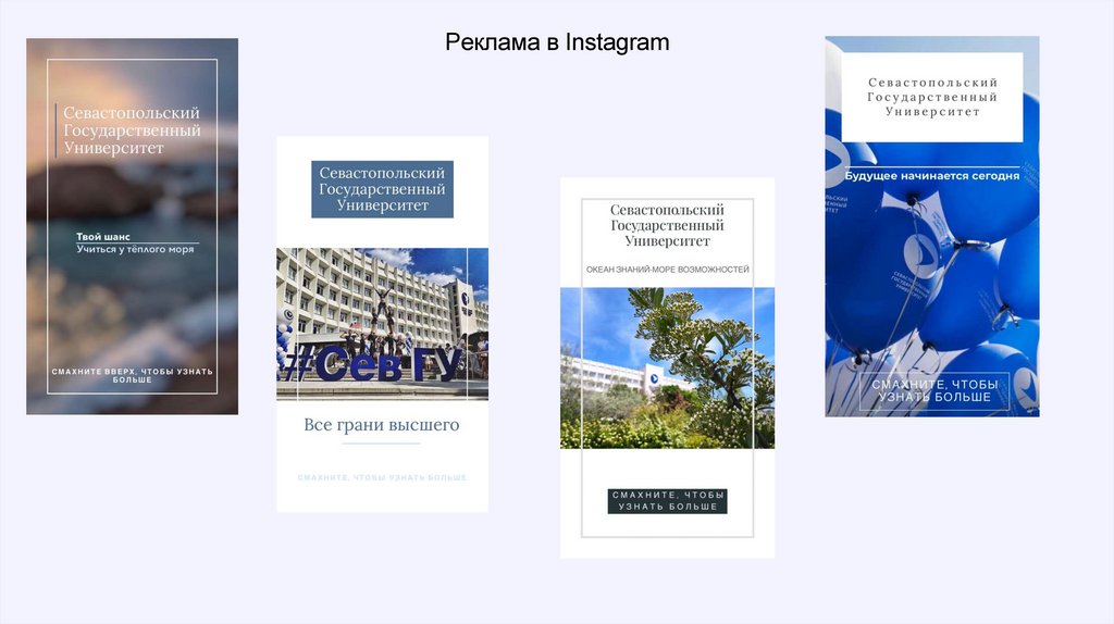 • Ведение официальной страницы СевГУ в Instagram;