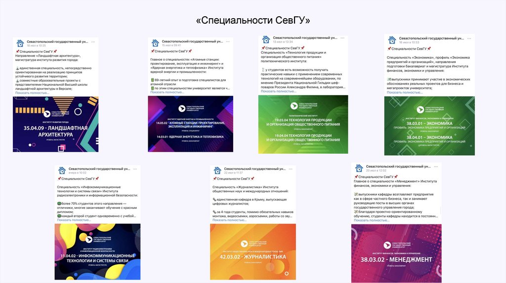 • Ведение рубрики «Специальности СевГУ» во ВКонтакте;