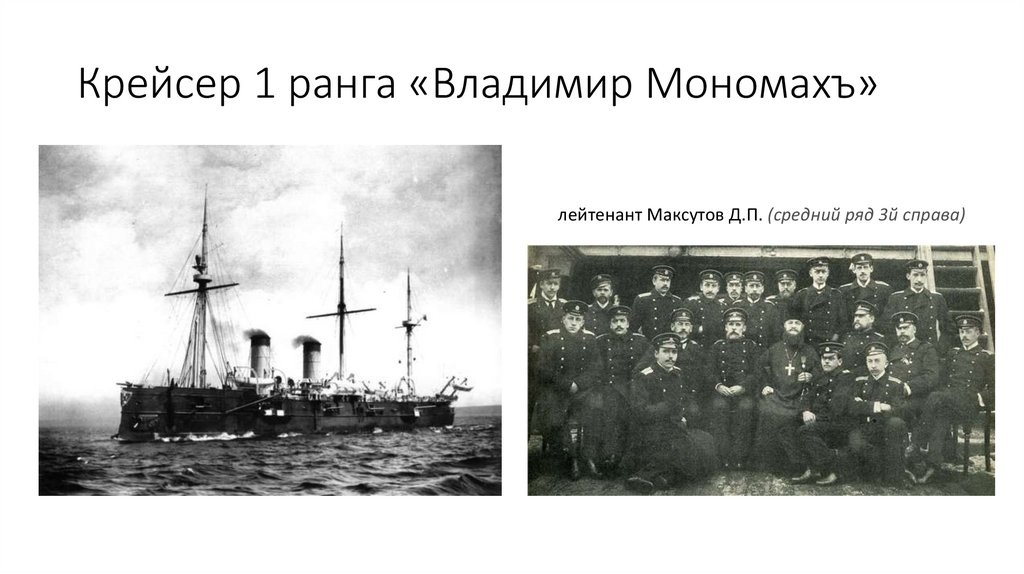 Крейсер 1 ранга «Владимир Мономахъ»лейтенант Максутов Д.П. (средний ряд 3й справа)