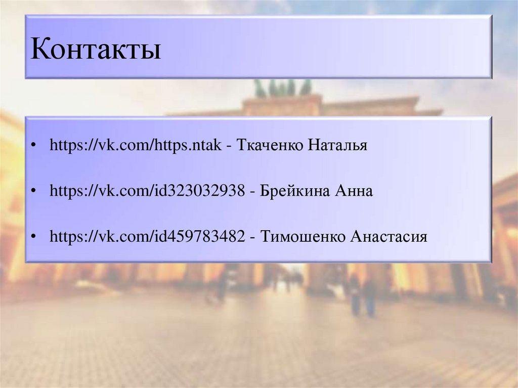 • https://vk.com/id459783482 - Тимошенко Анастасия