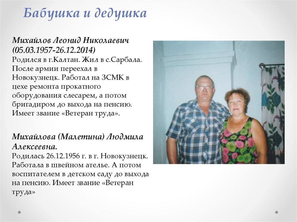 Бабушка и дедушкаМихайлов Леонид Николаевич