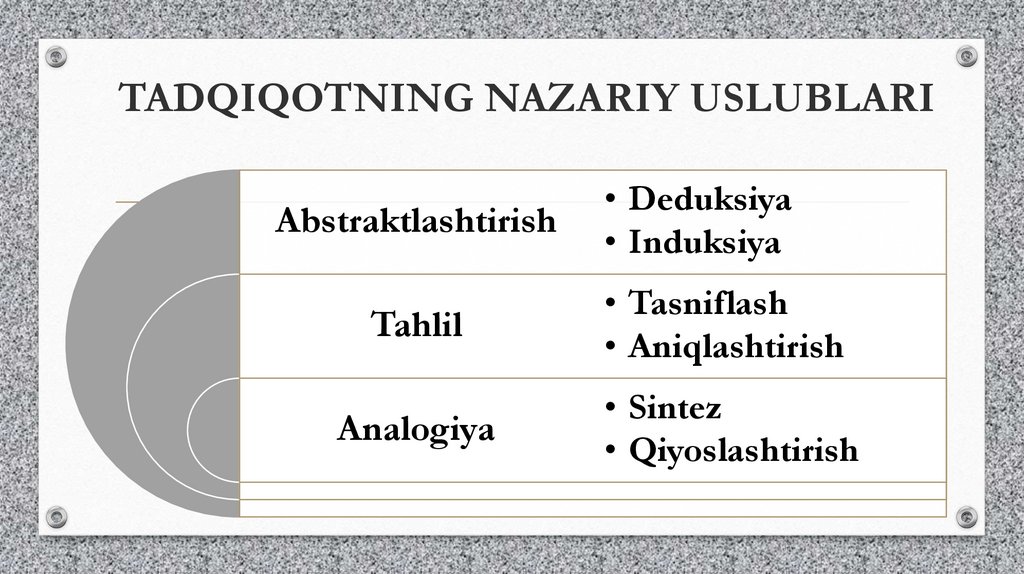 TADQIQOTNING NAZARIY USLUBLARIAbstraktlashtirish