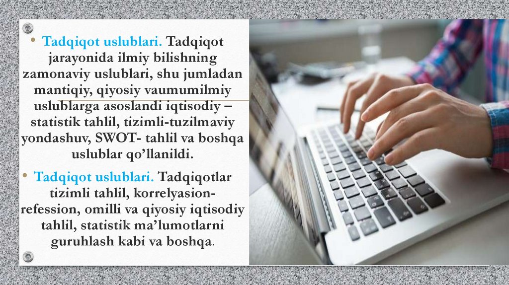• Tadqiqot uslublari. Tadqiqotlar
