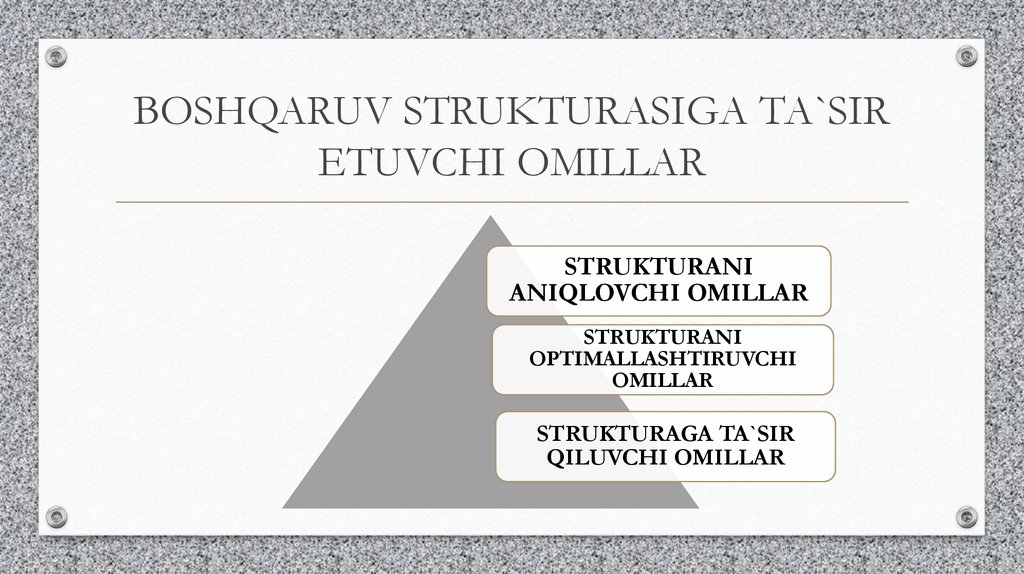 BOSHQARUV STRUKTURASIGA TA`SIRETUVCHI OMILLAR