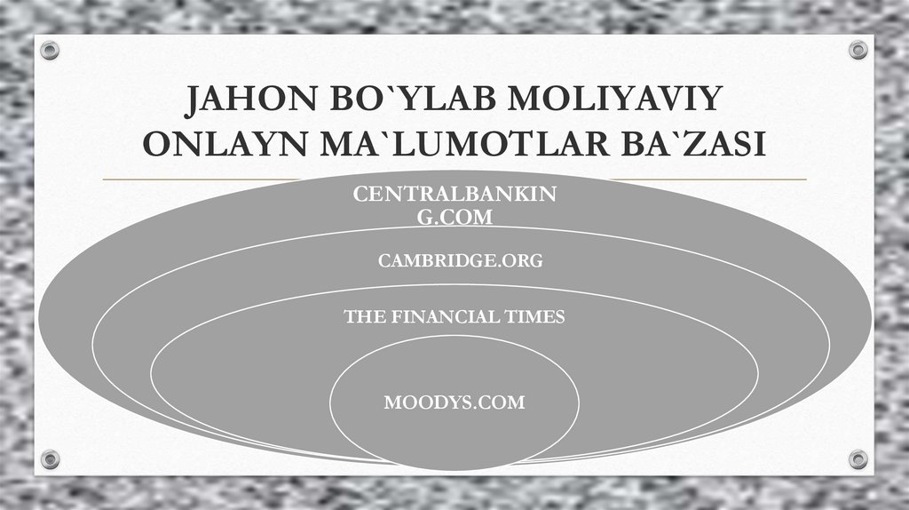 JAHON BO`YLAB MOLIYAVIYONLAYN MA`LUMOTLAR BA`ZASI