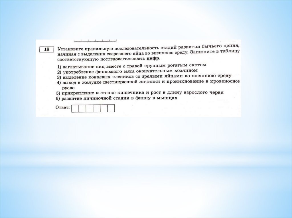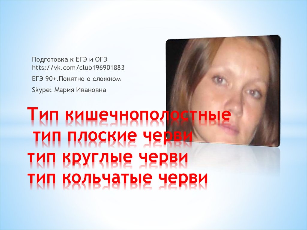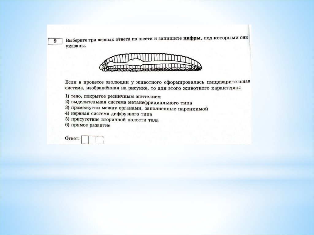Тип Кишечнополостные, тип Плоские черви, тип Круглые черви, тип Кольчатые черви