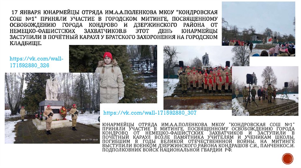 30 ЯНВАРЯ.ЮНАРМЕЙЦЫ ОТРЯДА ИМ.А.А.ПОЛЕНКОВАМКОУ "КОНДРОВСКАЯ СОШ №1" ПРИНЯЛИ УЧАСТИЕ В