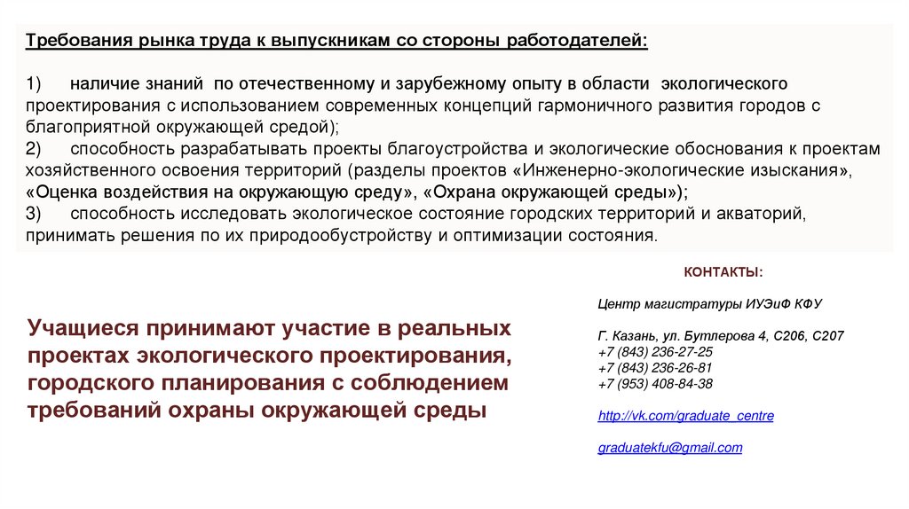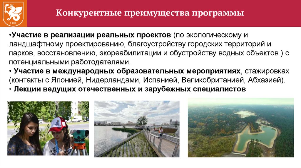 Конкурентные преимущества программы•Участие в реализации реальных проектов (по экологическому и
