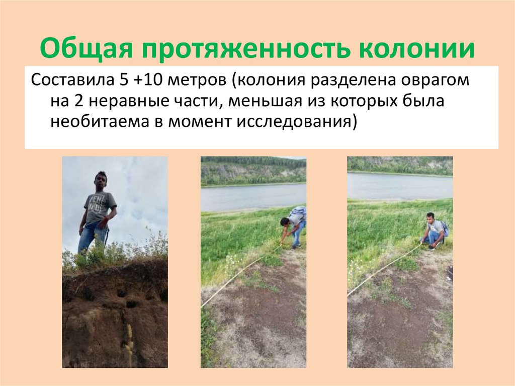 Общая протяженность колонииСоставила 5 +10 метров (колония разделена оврагом