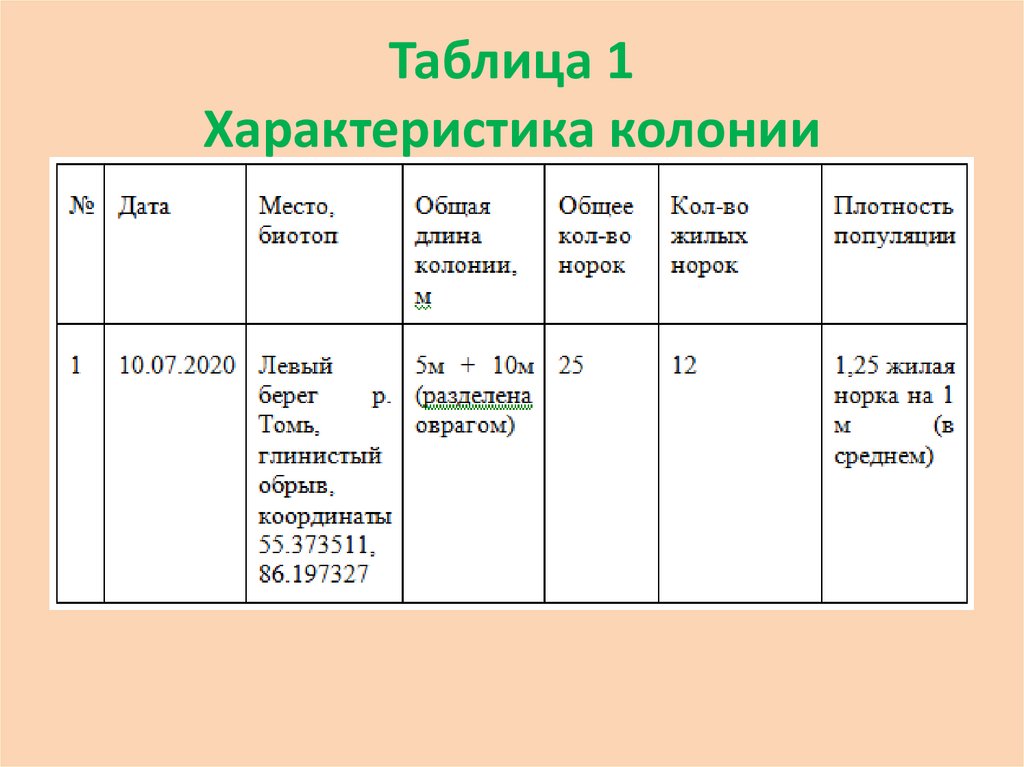 Таблица 1Характеристика колонии