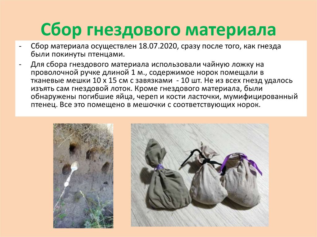 Для сбора гнездового материала использовали чайную ложку на