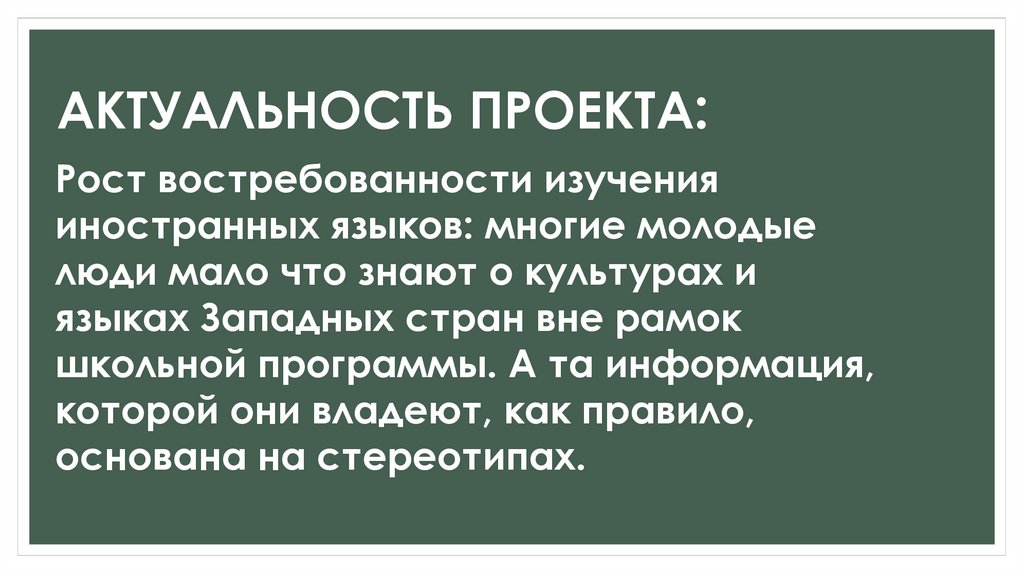 АКТУАЛЬНОСТЬ ПРОЕКТА:Рост востребованности изучения