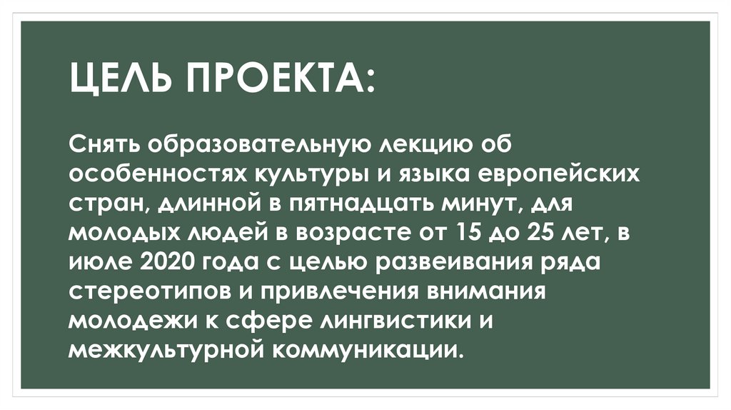 ЦЕЛЬ ПРОЕКТА:Снять образовательную лекцию об