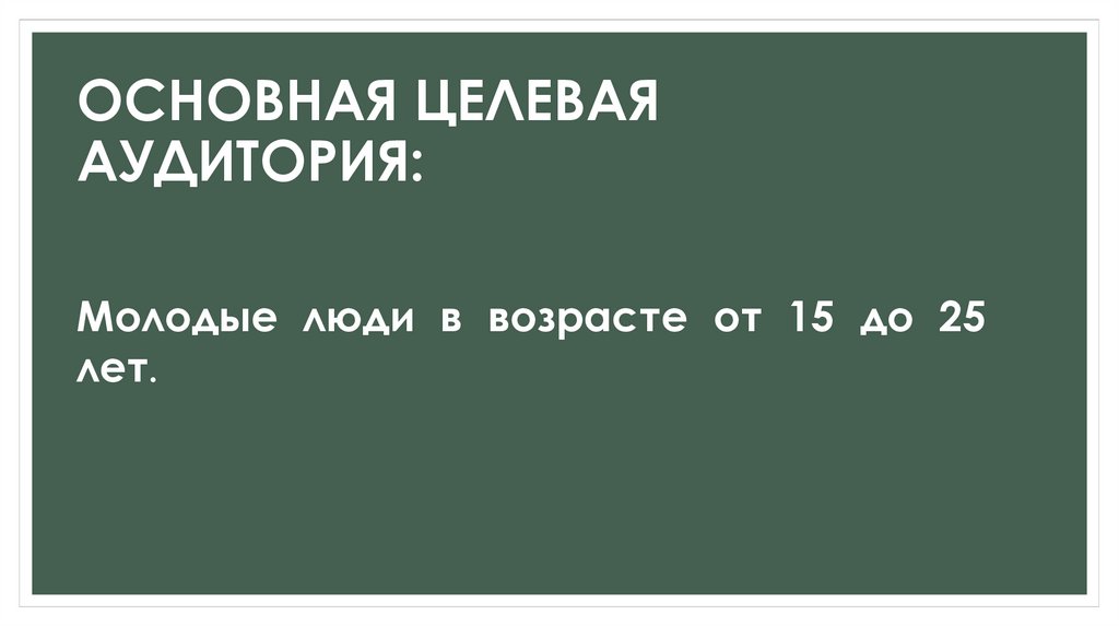 ОСНОВНАЯ ЦЕЛЕВАЯАУДИТОРИЯ: