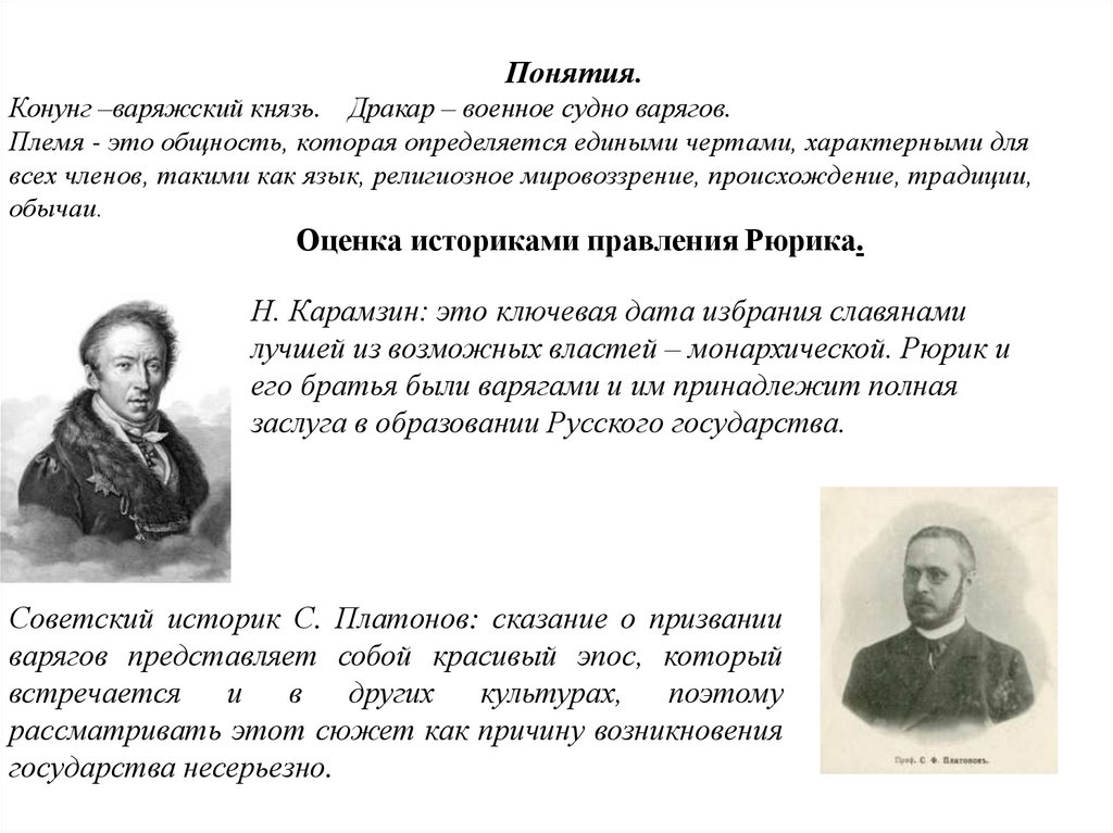 Понятия.Конунг –варяжский князь. Дракар – военное судно варягов.