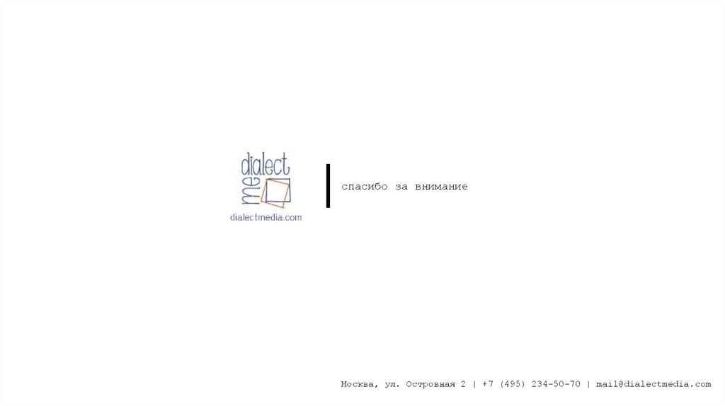 спасибо за вниманиеМосква, ул. Островная 2 | +7 (495) 234-50-70 | mail@dialectmedia.com