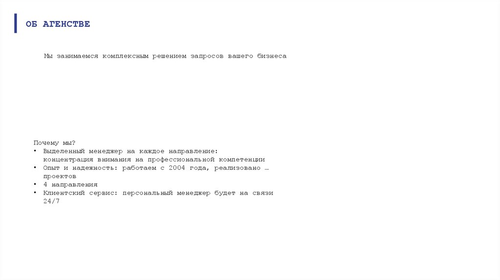 ОБ АГЕНСТВЕМы занимаемся комплексным решением запросов вашего бизнеса
