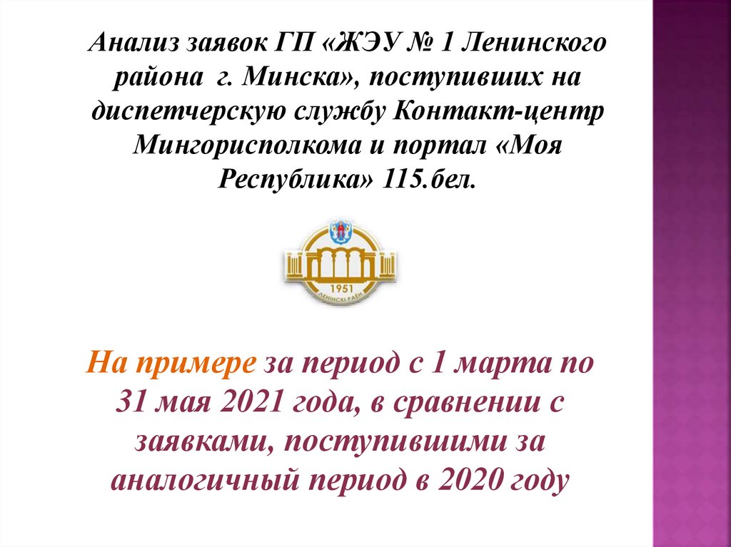 Анализ заявок ГП «ЖЭУ № 1 Ленинскогорайона г. Минска», поступивших на