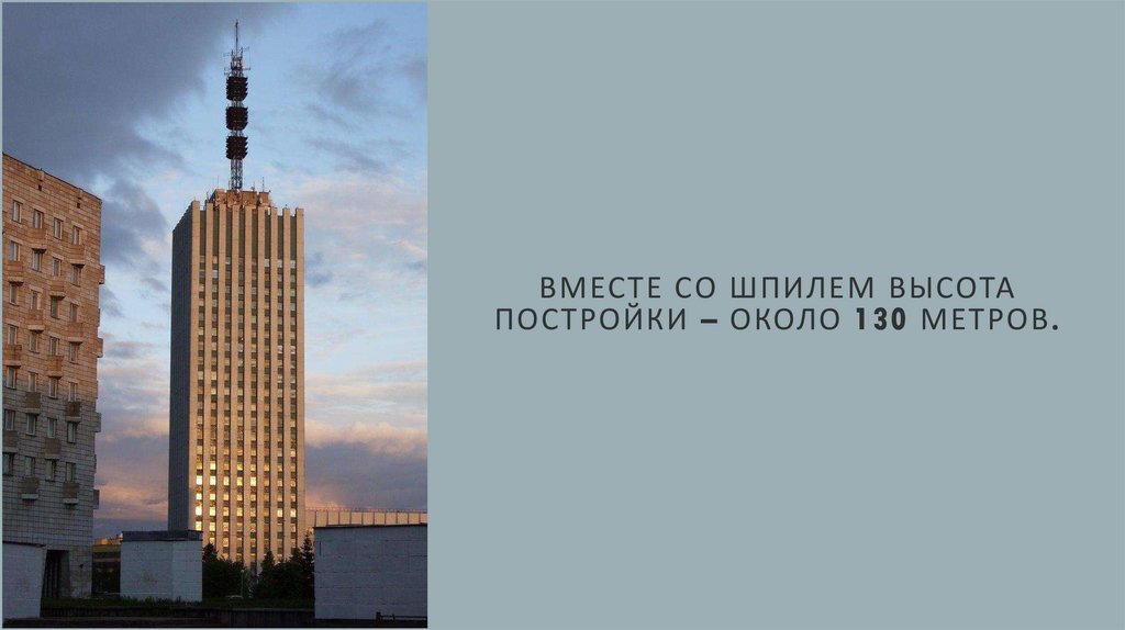 ВМЕСТЕ СО ШПИЛЕМ ВЫСОТАПОСТРОЙКИ – ОКОЛО 130 МЕТРОВ.