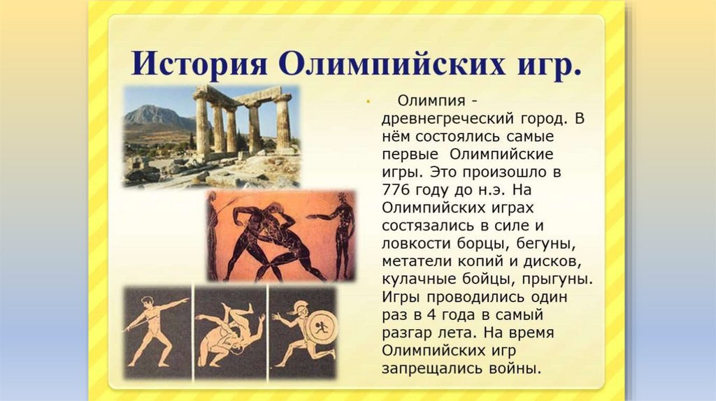 В первых Олимпийских играх разрешалось участвовать только полноправным грекам