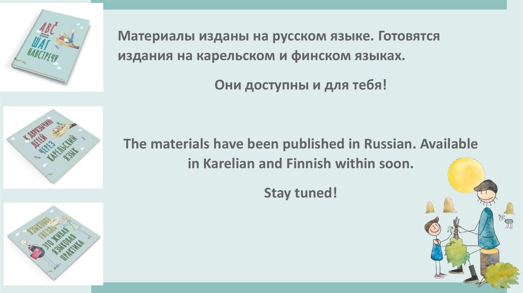 Красочный пакет изданий на тему: Как передать карельскийязык детям. Практическое пособие и две брошюры