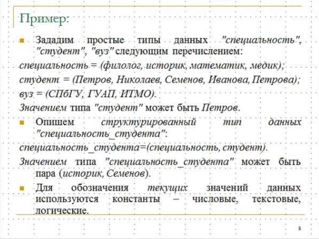 Информатика. Базовые алгоритмические структуры. Данные, их типы, структуры и обработка. Лекция 7