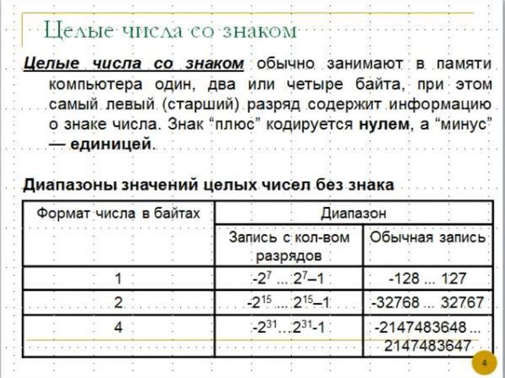 Информатика. Представление чисел в ЭВМ. Лекция 4