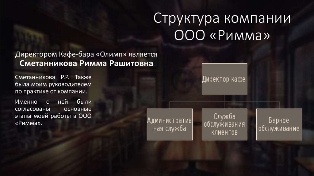 Директором Кафе-бара «Олимп» является