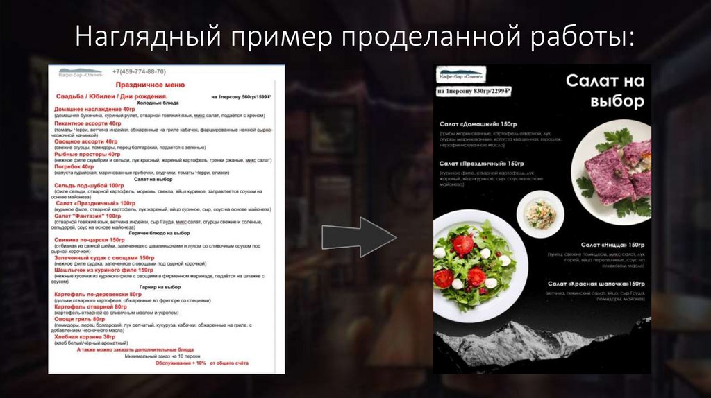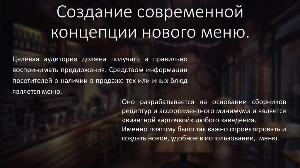 Создание современнойконцепции нового меню.