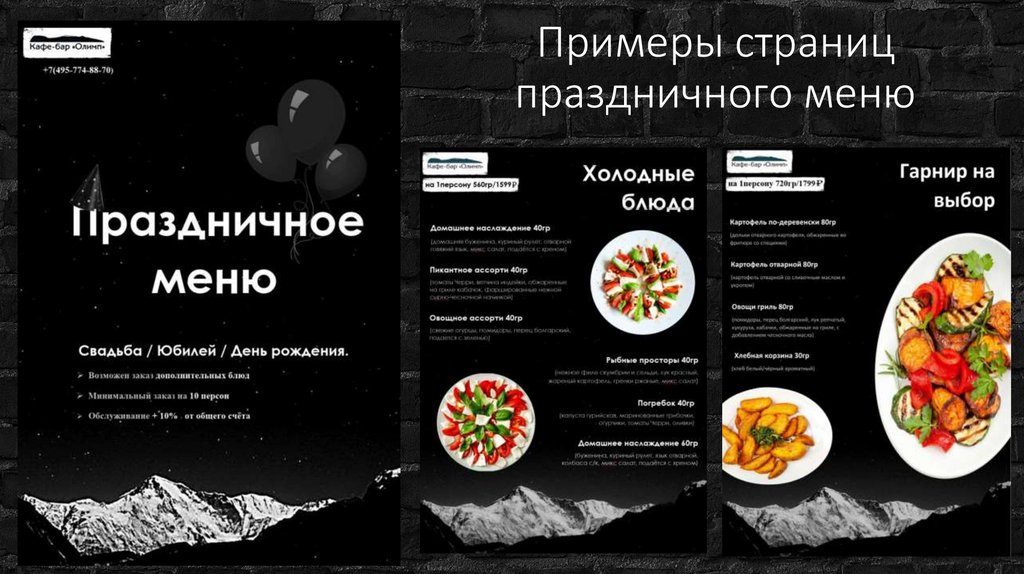 Примеры страницпраздничного меню