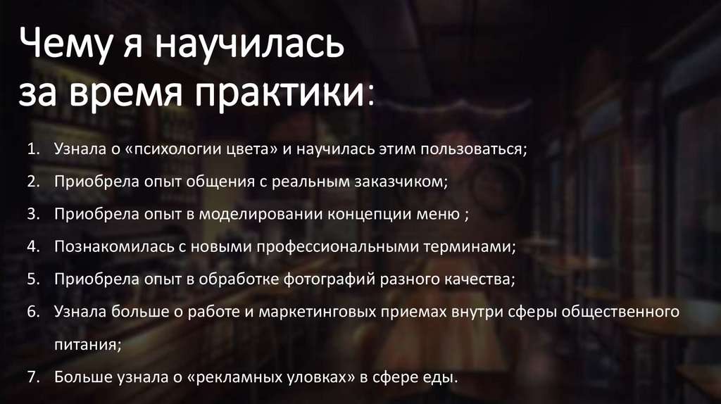 4. Познакомилась с новыми профессиональными терминами;