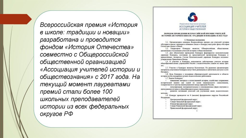 Всероссийская премия дляучителей истории